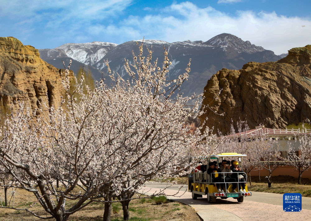 春暖花開的季節(jié),位于青海省海南藏族自治州貴德縣的貴德國家地質公園迎來春游的游客,盛開的春花與丹霞地貌、雪山構成一幅美麗的高原春色圖。