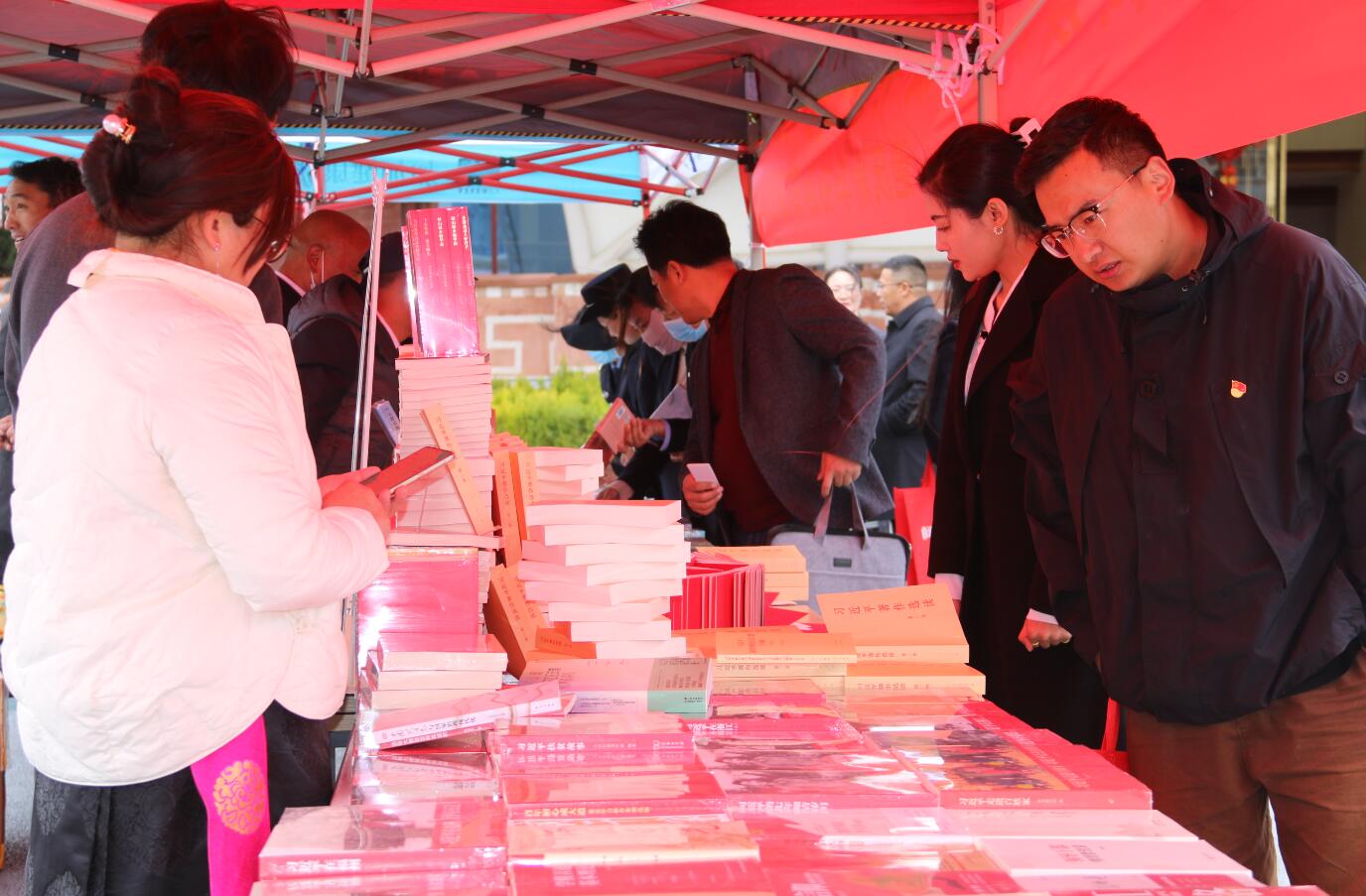 近日,記者在重點(diǎn)出版物展示展銷暨惠民書市活動(dòng)現(xiàn)場看到,迪慶州各大書店在香格里拉大劇院廣場中央擺放著大量習(xí)近平新時(shí)代中國特色社會主義思想讀物,吸引著市民前來翻閱購買。