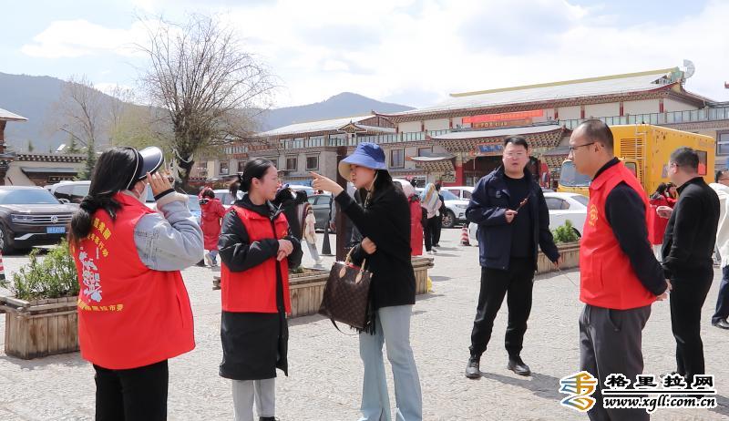 “五一”假期期間,香格里拉市文旅青年志愿服務(wù)者在該市各個(gè)景區(qū)景點(diǎn)雷鋒志愿服務(wù)站為游客提供游覽咨詢、宣傳引導(dǎo)、便民應(yīng)急等服務(wù)。(魯茸追瑪 和麗瑤 攝影報(bào)道)