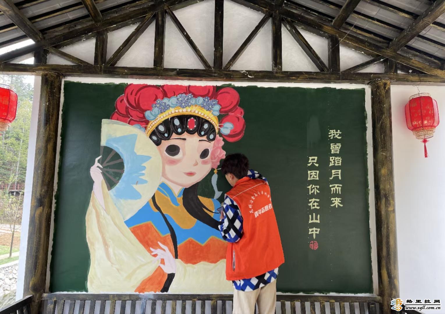墻繪緊扣“邂逅幸福、遇見幸?!钡闹黝},采用本土少數(shù)民族文化藝術元素和流行文化藝術元素相融合的方法,繪制成了一幅幅將美麗留于鄉(xiāng)村,用藝術留住鄉(xiāng)愁的畫卷。