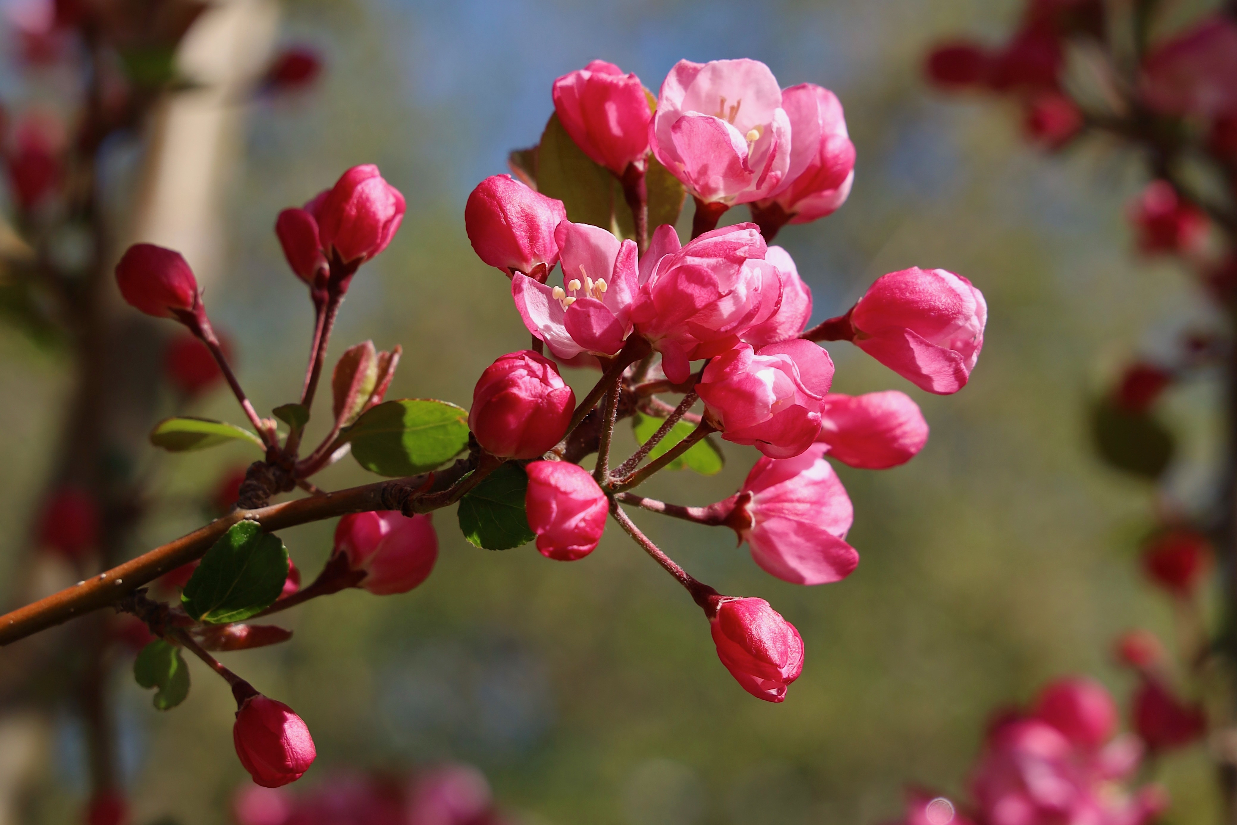 5月,香巴拉公園內(nèi)各色花卉競相開放,天藍(lán)更襯花紅,杜鵑花、海棠花、櫻桃李花在光影下變幻著不同的美。微風(fēng)輕拂,花色明亮,季節(jié)的故事在這一片片花色中演繹開來。