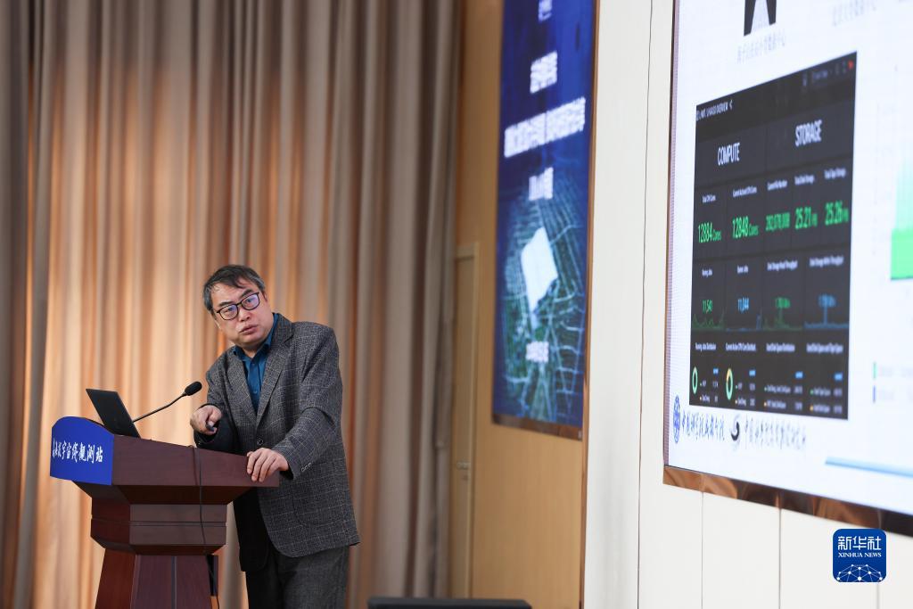 4月23日,“拉索”首席科學家、中科院高能物理所研究員曹臻在成都舉行的發(fā)布會上介紹相關情況。新華社記者 金立旺 攝
