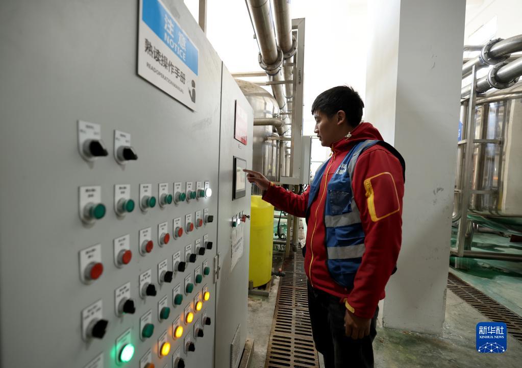 4月22日,在高海拔宇宙線觀測站觀測基地水處理機房,工作人員在操作水處理相關程序。新華社記者 金立旺 攝