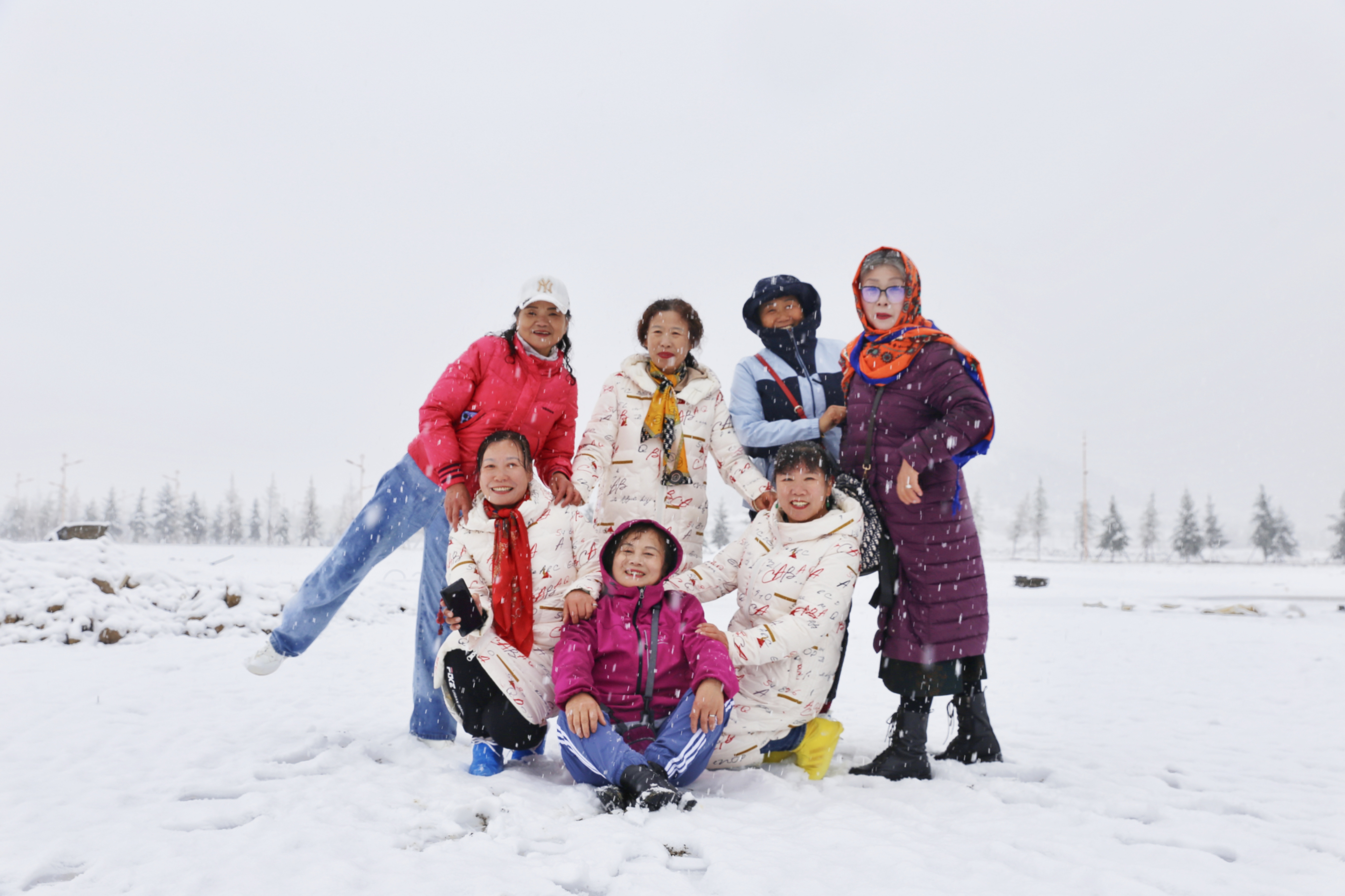 5月15日,香格里拉迎來(lái)一場(chǎng)夏雪,大雪紛飛的雪地中一群來(lái)自貴州的“嬢嬢團(tuán)”正興奮的玩雪、拍照,“太有意思了,五月也能玩到雪,很難得?!苯衲?5歲的劉嬢嬢告訴記者,她們?cè)谙愀窭锢瓮嫒奶炝?,今天?zhǔn)備返程,出城路上被雪景吸引便索性再留出半天時(shí)間看雪。雪地中的嬢嬢們精氣十足,捏雪球、劈腿、下腰、打滾……大家紛紛擺出自己最拿手的pose拍照記錄下這令人驚喜的美景。