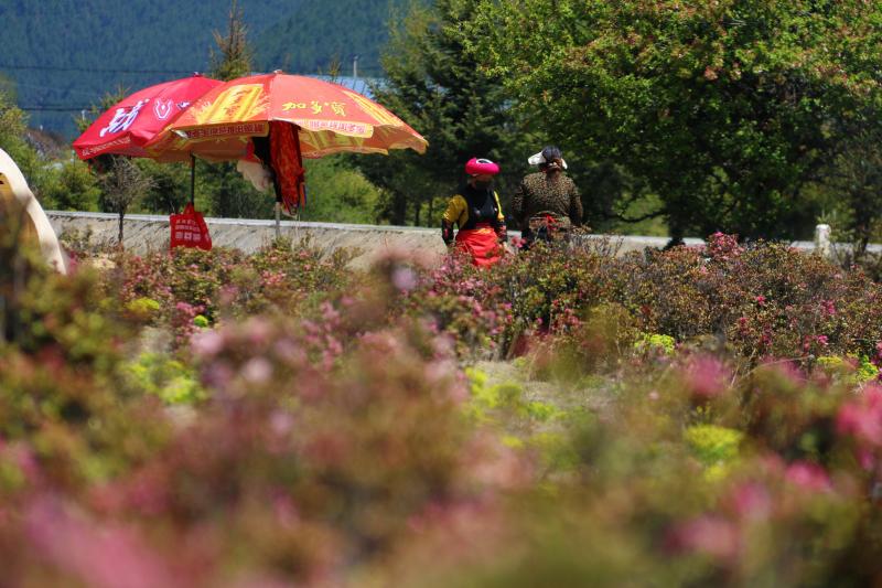夏天,位于香格里拉市小中甸鎮(zhèn)的杜鵑花海競相綻放,紫色、粉色的花朵開成了海,與藍天白云遙相呼應(yīng),藏房點綴其間,美不勝收。每當花季,當?shù)氐睦习傩赵诨ê_厰[起特色美食,牦牛酸奶、苦蕎粑粑、酥油茶等美食供游客享用,坐在花海邊,品嘗當?shù)靥厣朗常沁@個夏天小中甸花海獨有的浪漫。
