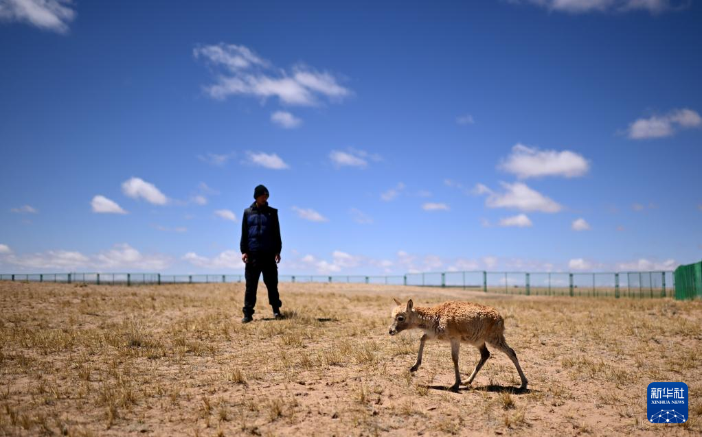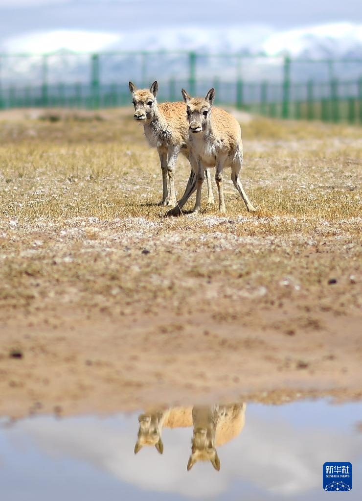 在可可西里國(guó)家級(jí)自然保護(hù)區(qū)索南達(dá)杰保護(hù)站,藏羚羊在野生動(dòng)物救助中心活動(dòng)(5月30日攝)?!⌒氯A社記者 薛玉斌 攝