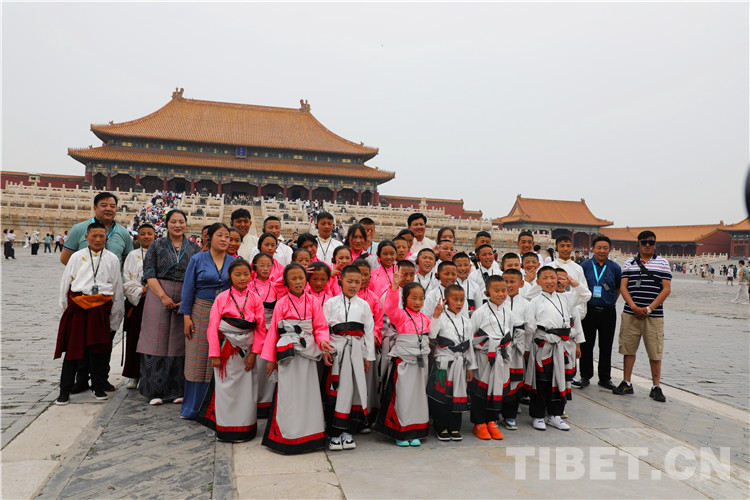 圖為玉樹青少年在故宮博物院合影留念。他們大喊“北京,我來了!扎西德勒!”攝影:王茜