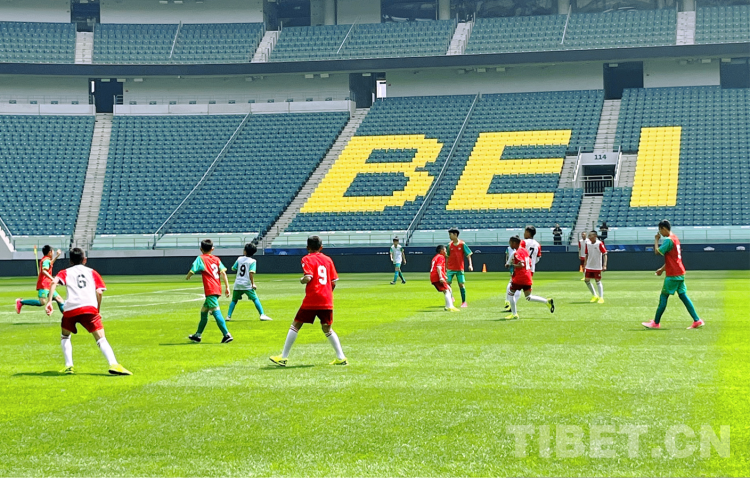 圖為玉樹少年們在工人體育場與北京國安少年足球隊(duì)一起訓(xùn)練交流比賽 攝影:王茜