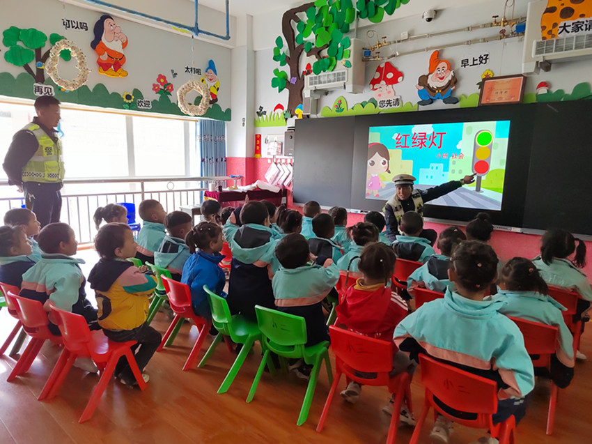 日前,理塘縣高城鎮(zhèn)幼兒園開展了交通安全進(jìn)課堂活動(dòng),引導(dǎo)孩子們從小養(yǎng)成遵守交通規(guī)則的好習(xí)慣。圖為交警為幼兒講解交通安全知識(shí)。
