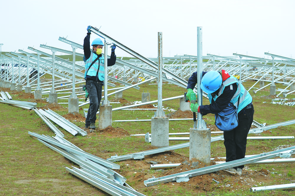 工人們正在安裝光伏支架。欒雨嘉 攝