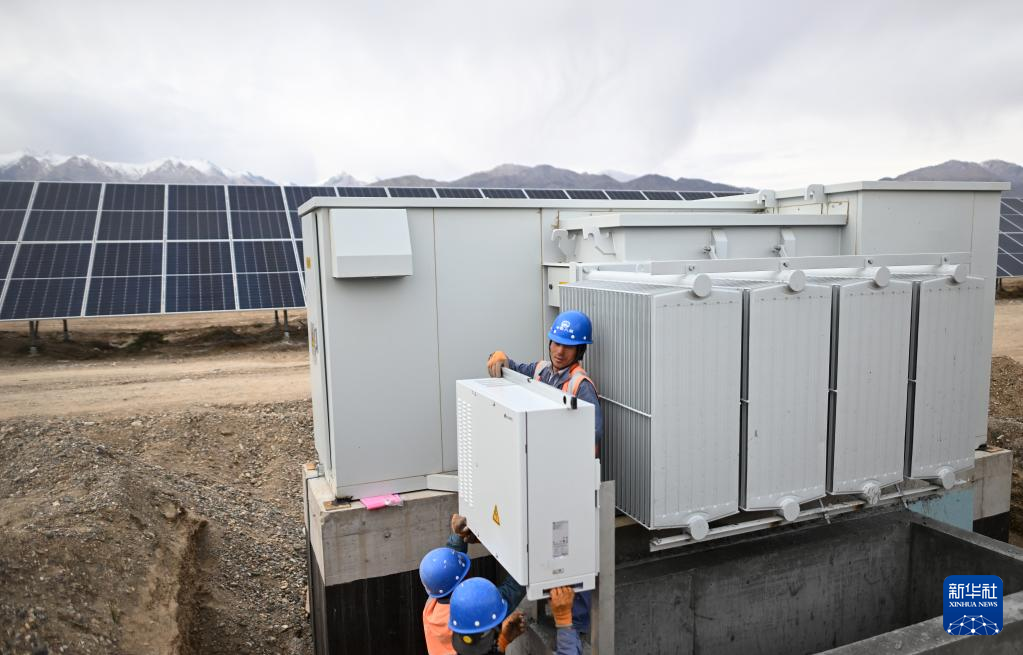 6月10日,中鐵八局施工人員在海西蒙古族藏族自治州德令哈市中國華電50萬千瓦光伏項(xiàng)目現(xiàn)場進(jìn)行檢查。 新華社記者 張宏祥 攝