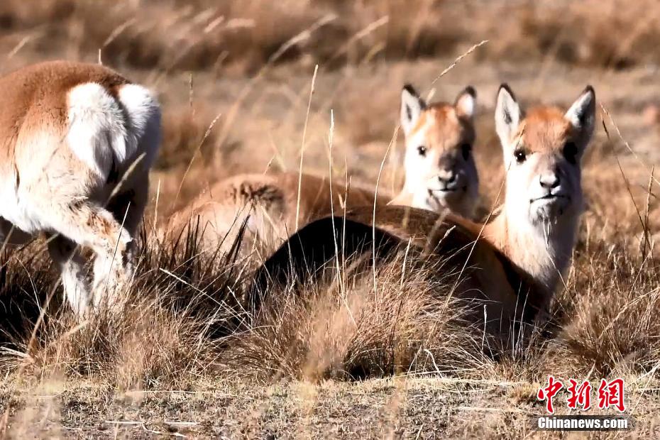 青海湖畔普氏原羚覓食嬉戲悠閑愜意