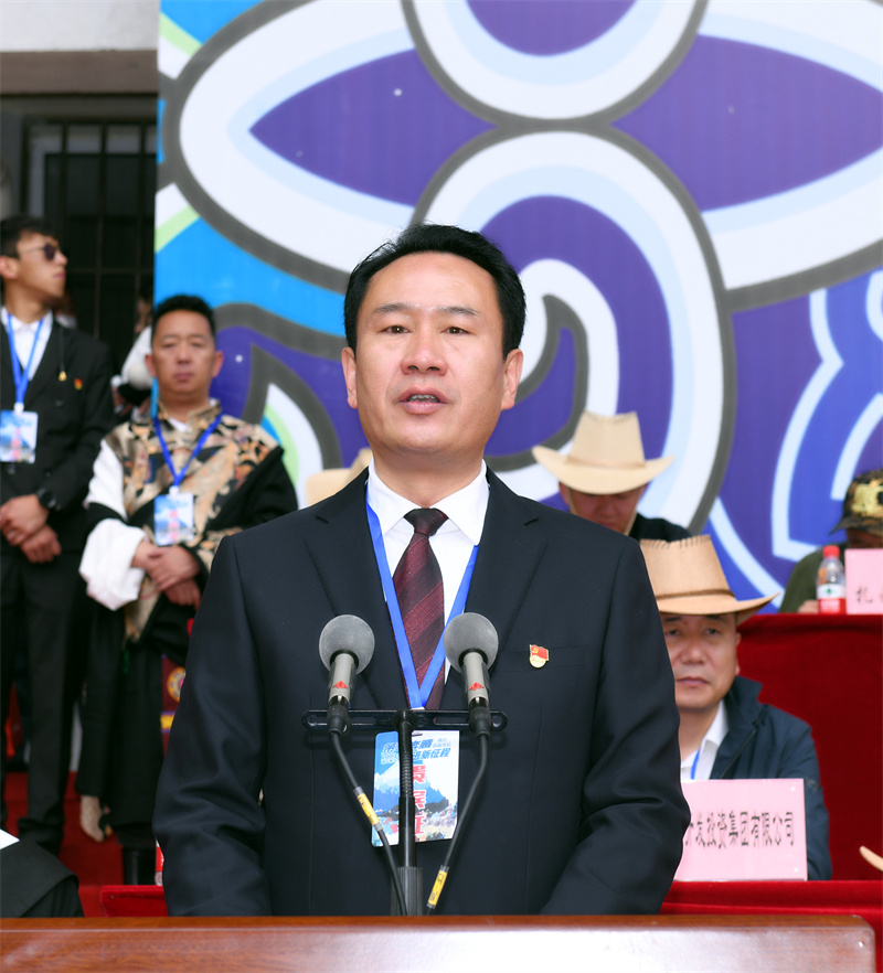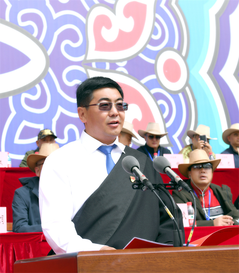 州委常委、香格里拉市委書記楊梓江致辭。他說,黨的十八大以來,在黨中央的親切關(guān)懷下,在省委、省政府和州委、州政府的堅(jiān)強(qiáng)領(lǐng)導(dǎo)下,香格里拉市堅(jiān)持推動高質(zhì)量發(fā)展,如期實(shí)現(xiàn)脫貧摘帽,進(jìn)入“高速時代”“5G時代”,即將在全國涉藏州縣中率先進(jìn)入“動車時代”,各項(xiàng)事業(yè)取得長足進(jìn)步,各族群眾的獲得感、幸福感、安全感明顯增強(qiáng),世界的“香格里拉”正逐步從藍(lán)圖走向現(xiàn)實(shí)。他表示,舉辦此次賽馬節(jié),是香格里拉市實(shí)施“潤心工程”文化育人行動,充分挖掘節(jié)慶文化資源,唱響主旋律、弘揚(yáng)正能量、提振精氣神,以文化人、以文育人的重要舉措。期望通過舉辦此次活動,有力促進(jìn)各民族交往交流交融,有力促進(jìn)“以文塑旅、以旅彰文”取得新成效,有力促進(jìn)大滇西旅游環(huán)線、大香格里拉旅游圈建設(shè)取得新進(jìn)展。
