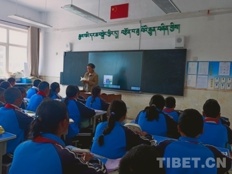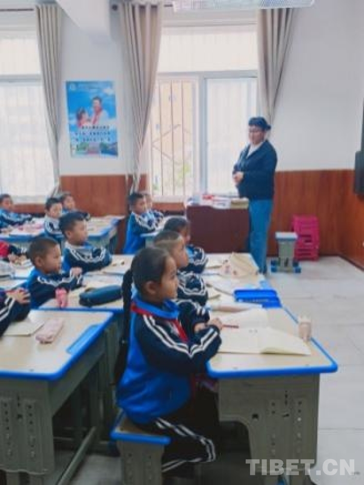 圖為該校藏文老師加羊卓姆為六年級學(xué)生講授文法