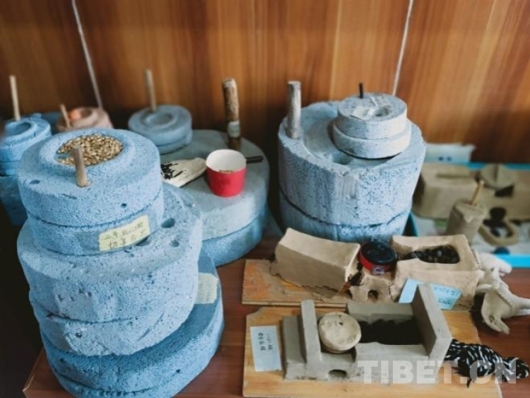 圖為學(xué)生和家長一起手工制作的糌粑磨盤