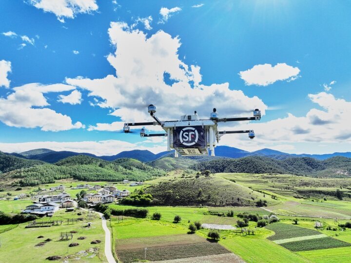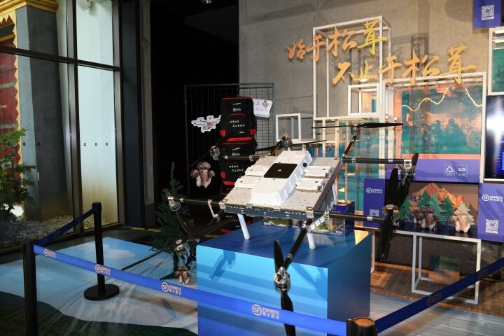 運有松茸的無人機從產(chǎn)區(qū)香格里拉市建塘鎮(zhèn)吉迪村出發(fā),不到20分鐘就被送達位于市區(qū)香格里拉大酒店的“始于松茸、不止于松茸”第二屆香格里拉松茸論壇暨順豐寄遞解決方案發(fā)布會現(xiàn)場,這是順豐公司給出的2023年松茸寄遞解決方案之一。