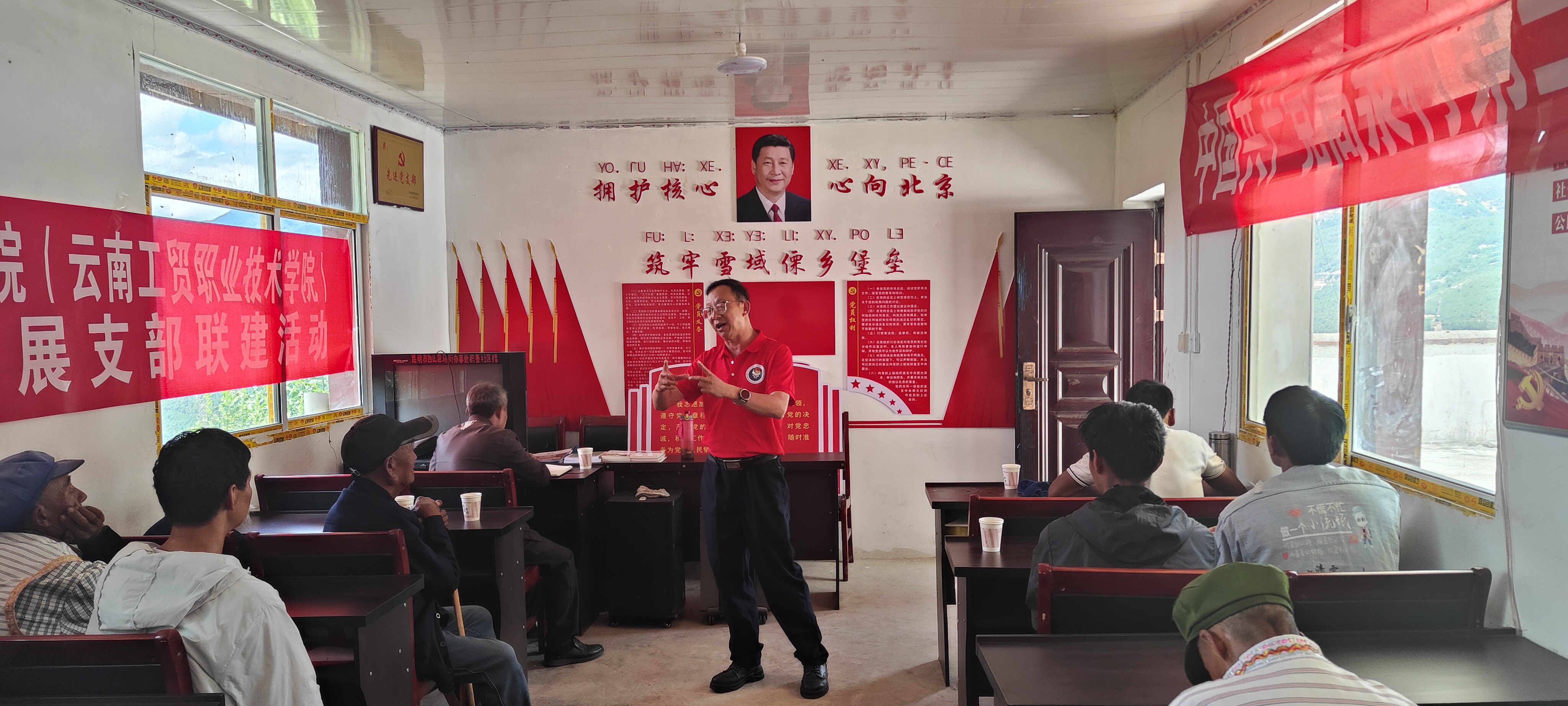 支部聯(lián)建強信心。學(xué)院審計黨支部、院團委黨支部、建筑與工藝技術(shù)系黨支部與高泉村第三、第七黨支部開展支部聯(lián)建活動,通過贈送種養(yǎng)殖書籍、觀看警示紀(jì)錄片《巡劍破風(fēng)》、合唱紅歌等活動,為掛鉤點黨員群眾送上精神食糧。