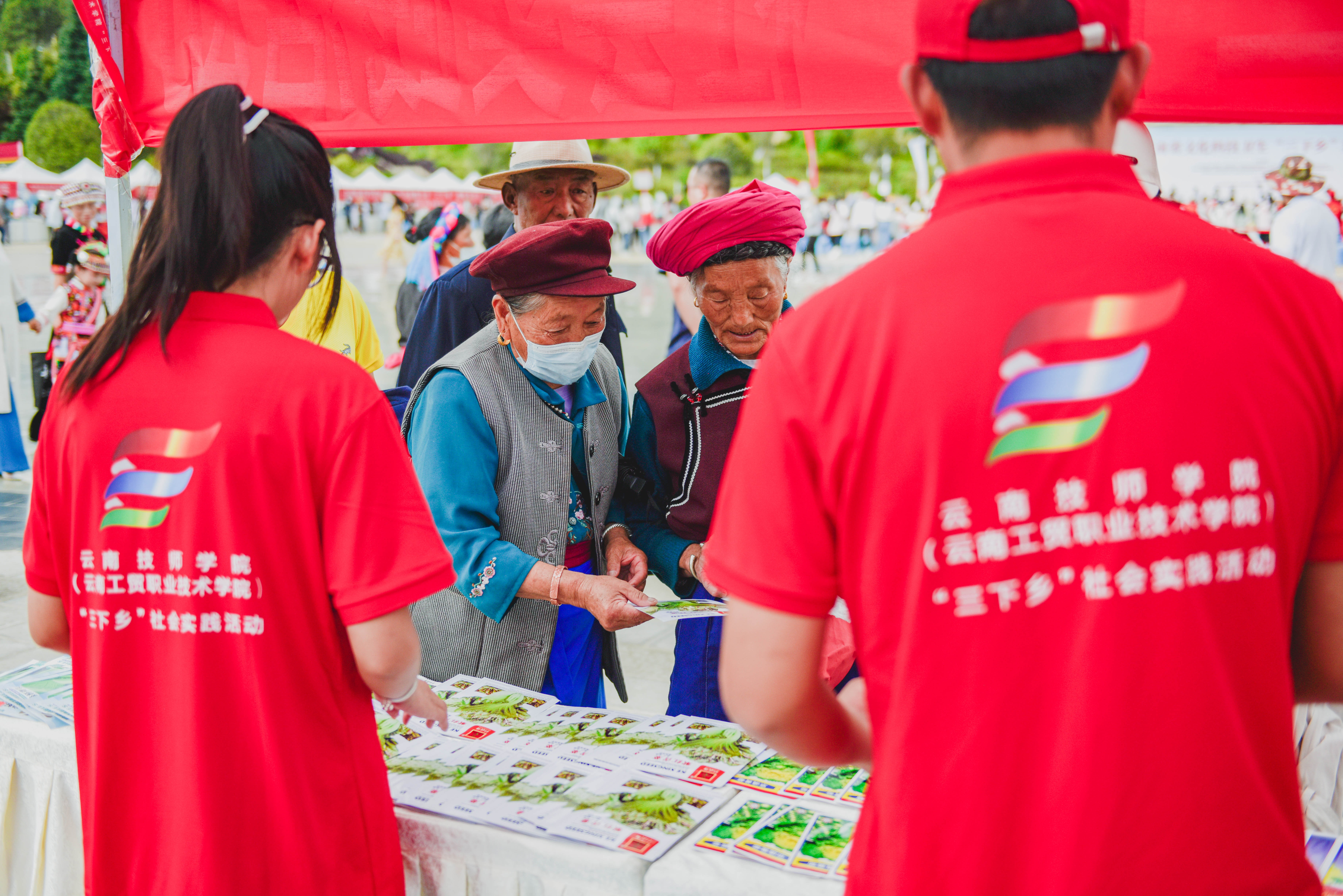 集中示范聚民心。學(xué)院“三下鄉(xiāng)”服務(wù)隊在維西縣萬人廣場參加集中示范活動,向群眾免費發(fā)放了青菜、芥菜、蘿卜等10余類菜種800余包,鼓勵群眾大力發(fā)展庭院經(jīng)濟,推進農(nóng)村人居環(huán)境整治,助力村民增收致富。