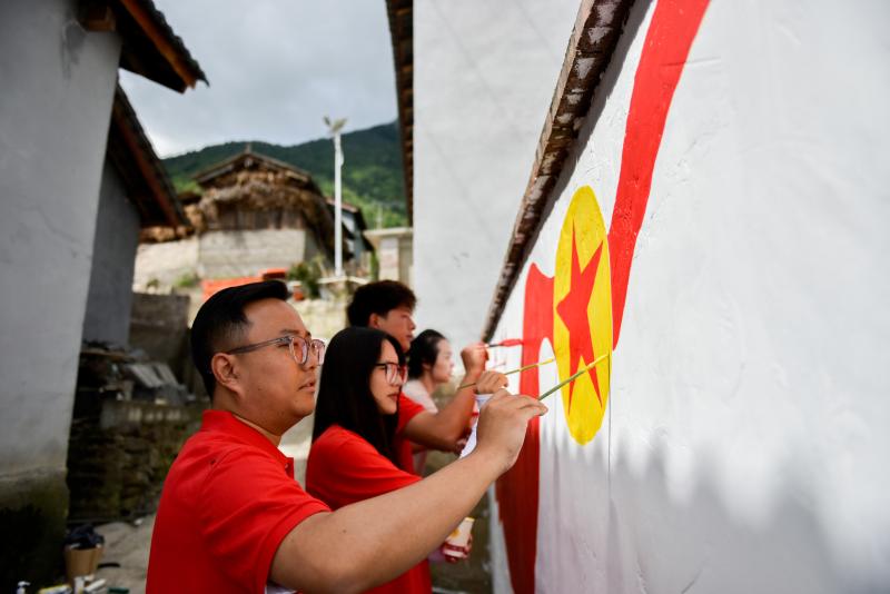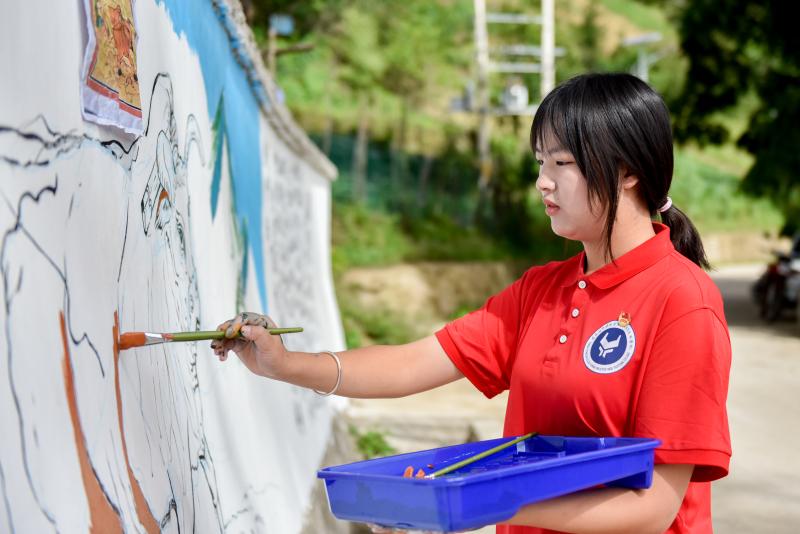 環(huán)境提升美人心。學(xué)院建筑與工藝技術(shù)系及院團委師生共20人到定點幫扶點拉日村阿尺瑪?shù)走M行鄉(xiāng)村風(fēng)貌美化工作,開展以黨建、推廣普通話及傈僳族文化為主題的墻面繪畫,累計完成400平米的墻繪,推動農(nóng)村人居環(huán)境提升,讓鄉(xiāng)村面貌煥然一新。