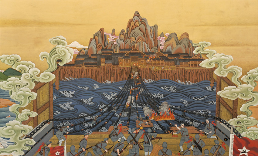 巨幅唐卡《紅星照耀雪域》中的飛奪瀘定橋場景?!凹t色非遺根植中華文化故土,富含深刻的革命文化,它代表了中華文化中先進(jìn)的、優(yōu)秀的部分,紅軍長征更是文學(xué)藝術(shù)創(chuàng)作取之不盡用之不竭的源泉。[詳細(xì)] -