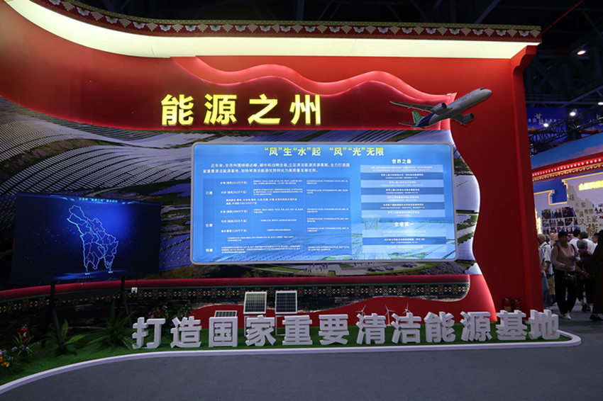 走進(jìn)甘孜展館,滿滿的甘孜元素。甘孜州將“能源之州”“文旅之州”“有機(jī)之州”三張名片,圖文并茂地呈現(xiàn)在觀展嘉賓眼前。站在能源之州展區(qū)前,記者第一眼看到“風(fēng)”生“水”起、“風(fēng)”“光”無限八個字下,7個“世界之最”和3個“全省第一”格外醒目。在電子屏幕上滾動播放著“能源之州”建設(shè)成效的宣傳視頻,讓大家直觀了解到甘孜州打造國家重要清潔能源基地的優(yōu)勢所在。