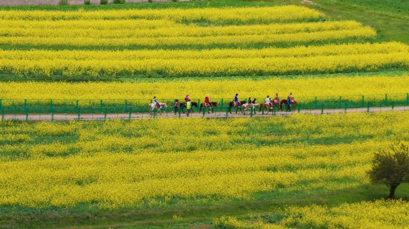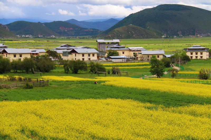迪慶香格里拉納帕海的油菜花田進(jìn)入盛花期