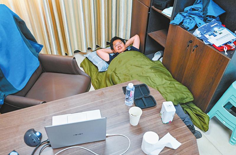 7月8日中午,子午工程二期圓環(huán)陣太陽射電成像望遠(yuǎn)鏡項(xiàng)目副主任設(shè)計師武林抓緊時間在辦公室午休。