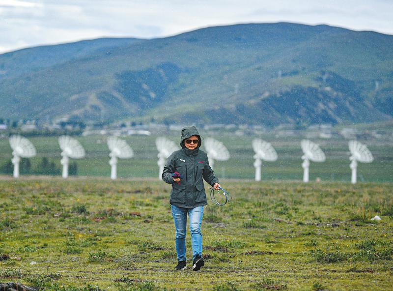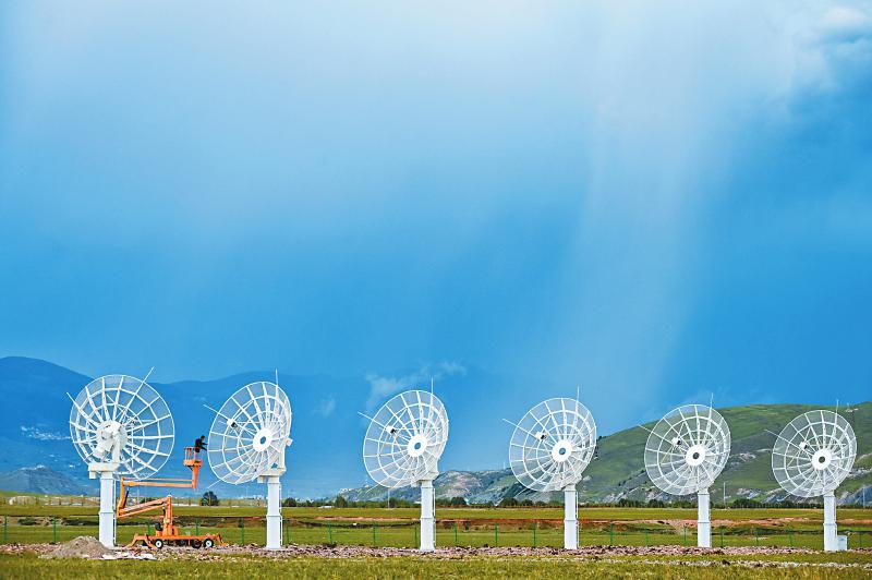 7月8日,四川省甘孜州稻城縣噶通鎮(zhèn)天氣說變就變。在國家重大科技基礎(chǔ)設(shè)施——空間環(huán)境地基綜合監(jiān)測網(wǎng)(子午工程二期)圓環(huán)陣太陽射電成像望遠(yuǎn)鏡項(xiàng)目建設(shè)現(xiàn)場,中國電科第39研究所現(xiàn)場施工負(fù)責(zé)人葉愛林和同事正在進(jìn)行天線增益調(diào)試實(shí)驗(yàn)。突然,一道閃電劃過天際,轟隆隆的雷聲過后便是傾盆大雨,葉愛林和同事不得不停下手中正在進(jìn)行的實(shí)驗(yàn),臨時找地方躲雨。“這雨下不了多久,等雨停了,我們再繼續(xù)?!痹陧?xiàng)目建設(shè)現(xiàn)場已工作了480多天的他,被同事們稱作半個氣象“土專家”。他不僅能“察言觀色”看懂高原上的云彩,還能大差不差地推測出天氣變化。在海拔3800多米的噶通鎮(zhèn),許多科研人員像葉愛林一樣,默默奮戰(zhàn),希望在建的這一國家重大科技基礎(chǔ)設(shè)施能早日運(yùn)行,為中國空間科學(xué)事業(yè)的發(fā)展提供關(guān)鍵性的探索幫助及技術(shù)支持,使我國步入世界空間科學(xué)領(lǐng)域的先進(jìn)行列。