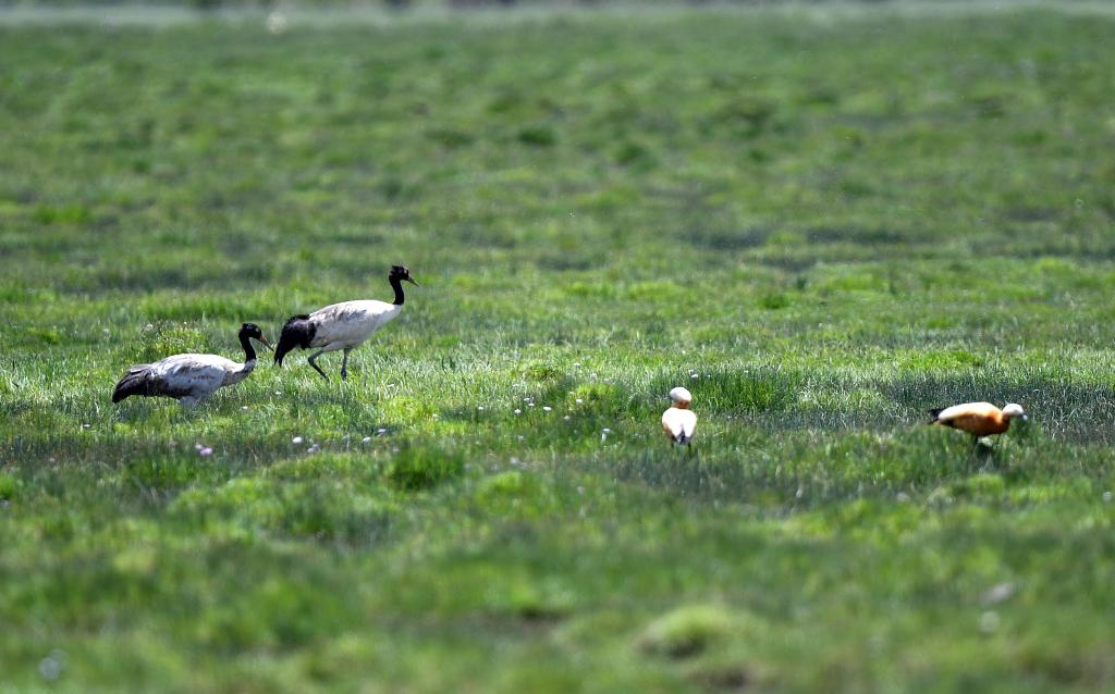 “黑頸鶴和斑頭雁數(shù)量現(xiàn)在肉眼可見地增多了?!辈湃实┲苷f,草長得好,濕地面積不斷擴(kuò)大,來到這里的鳥類才會(huì)不斷增加。
