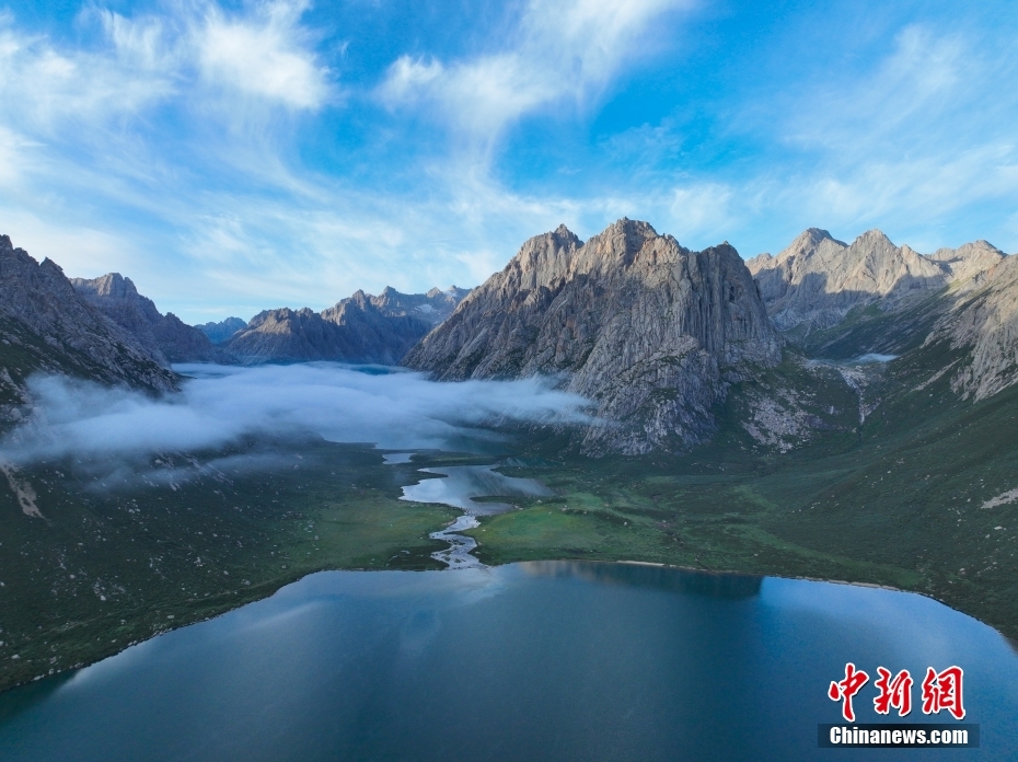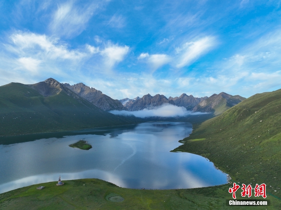 7月19日,盛夏時節(jié),青海省果洛藏族自治州久治縣年保玉則山間云霧繚繞,山下鮮花盛開,水清草豐,靜謐的湖水與嶙峋的山巒相映成趣,宛如仙境。年保玉則總面積3469平方公里,山形如蓮花,保存有冰蝕地貌、冰磧地貌、現(xiàn)代冰川等地質遺跡。中新社記者 馬銘言 攝