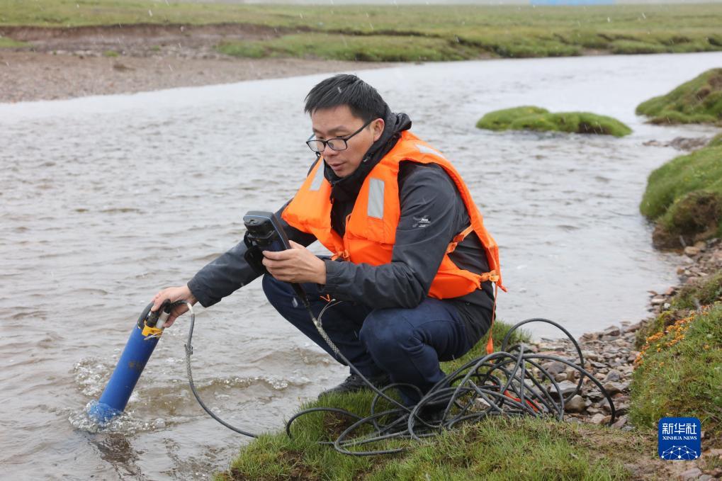 2023年江源綜合科學(xué)考察隊(duì)隊(duì)員在當(dāng)曲濕地進(jìn)行采樣和觀測(7月24日攝)。新華社記者 劉詩平 攝