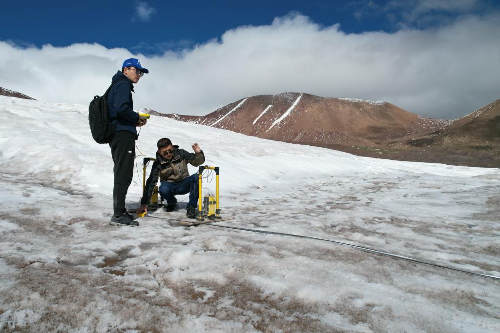 2022年江源綜合科學(xué)考察隊(duì)曾對(duì)此冰川進(jìn)行地質(zhì)雷達(dá)探測(cè),通過(guò)布設(shè)一維測(cè)線獲取冰川前緣的冰厚數(shù)據(jù),以及冰下地形走勢(shì)。今年在相同位置進(jìn)行探測(cè),增加了兩個(gè)二維測(cè)網(wǎng)的布設(shè),獲取的數(shù)據(jù)用于對(duì)比一年來(lái)冰川前緣冰厚和冰下地形的變化,計(jì)算測(cè)網(wǎng)內(nèi)準(zhǔn)確的冰儲(chǔ)量,揭示氣候變化對(duì)冰川退化的影響,以及冰川運(yùn)動(dòng)對(duì)于冰下基巖的剝蝕特征。