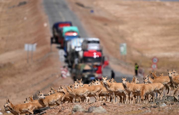 每年5至7月,“高原精靈”藏羚羊大遷徙拉開(kāi)序幕,數(shù)萬(wàn)只雌藏羚羊?qū)睦粘夭菰瓟y雌仔,一路向北跨越大山大河,奔赴數(shù)百公里外的可可西里——太陽(yáng)湖、卓乃湖地帶產(chǎn)羔生育。