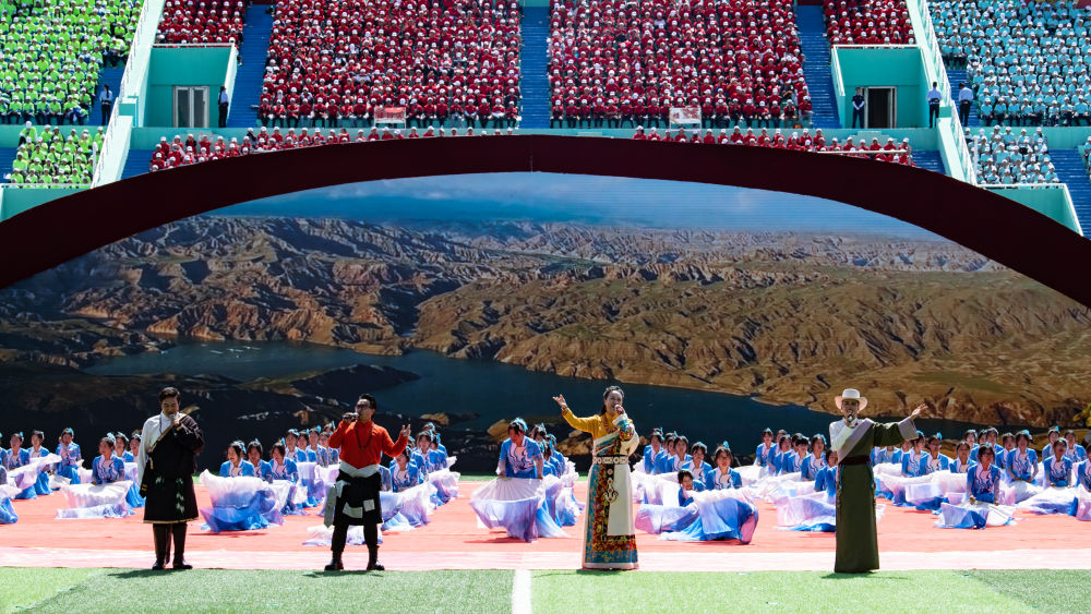 8月1日,青海省海南藏族自治州舉行慶祝成立70周年大會(huì)。海南州民族體育場(chǎng)彩旗飄飄,歌聲悠揚(yáng),各族群眾身著盛裝,滿懷喜悅。