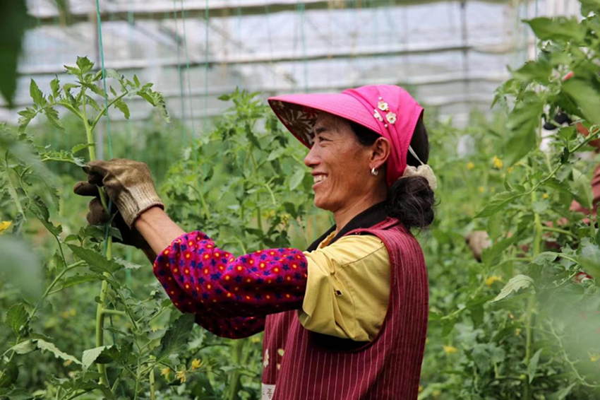 連日來的持續(xù)高溫,丹巴縣半扇門鎮(zhèn)團結(jié)村村民陳宗花,就一直在喇嘛寺村黨支部書記袁強創(chuàng)建的曲登沙農(nóng)機專業(yè)合作社基地為辣椒澆水。勞動強度不大,一天有100元的收入,年收入1.8萬元。自從2015年到基地打工以來,她的年收入就穩(wěn)定在2萬元左右。