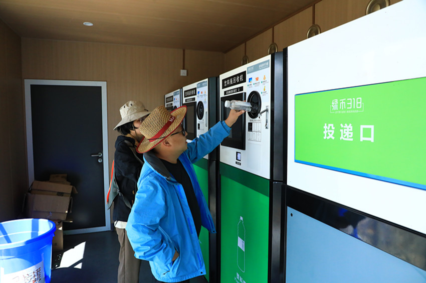 游客正在投遞飲料空瓶。