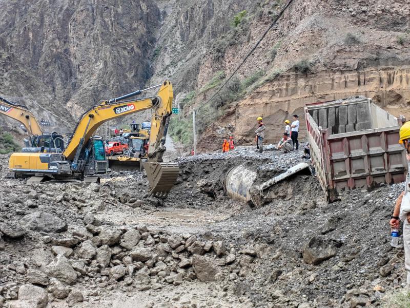 近日,受持續(xù)強降雨影響,G214線佛山鄉(xiāng)古水村附近K1911+750處發(fā)生泥石流災害,造成交通中斷。德欽公路分局立即啟動汛期保通應急預案,第一時間組織應急搶險人員趕赴現(xiàn)場,4臺裝載機、2臺挖掘機、4臺運輸車全力投入搶通工作中,并協(xié)同交警實行交通管制,疏散滯留車輛。經過多部門搶險保通作業(yè),受阻路段順利實現(xiàn)半幅通行。圖為現(xiàn)場正在清理鏟運泥沙。