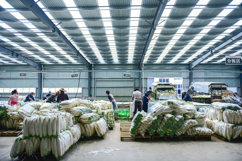 圖為雙創(chuàng)基地工人進行蘿卜打包。