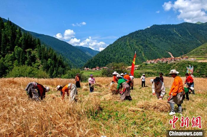 風(fēng)吹麥浪溢清香,田間地頭收割忙。眼下,四川阿壩州金川縣俄熱鄉(xiāng)成片的高原黑青稞迎來(lái)收獲季。村間沿路的田地里,黑青稞在微風(fēng)吹拂下如波濤翻滾,泛著金光。高處俯望,遠(yuǎn)處群山連綿,近處麥浪起伏,沃野千里,勾勒出一幅“產(chǎn)業(yè)興、百姓富、生態(tài)美”的鄉(xiāng)村振興美麗畫卷。