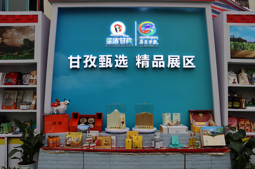 甘孜州各縣(市)的農(nóng)特產(chǎn)品吸引現(xiàn)場(chǎng)不少嘉賓、群眾紛紛圍觀搶購(gòu)。
