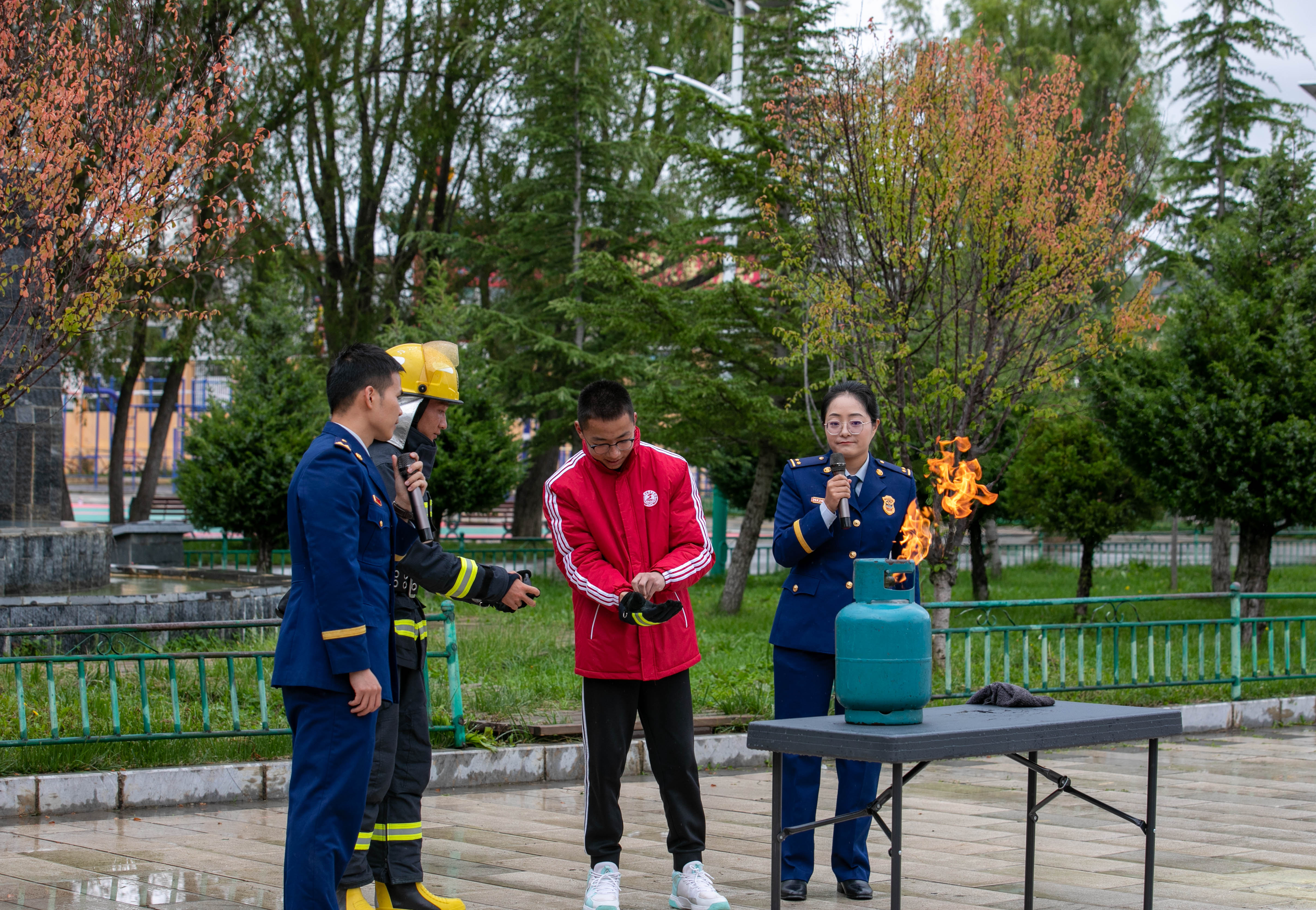 其間,支隊(duì)宣傳員還帶領(lǐng)學(xué)生們 “零距離”參觀體驗(yàn)消防車輛和器材裝備,對(duì)搶險(xiǎn)救援車、液壓破拆系統(tǒng)、手抬機(jī)動(dòng)泵等消防器材裝備進(jìn)行現(xiàn)場(chǎng)講解,讓師生了解器材裝備的用途和使用方法。活動(dòng)中還開展了真火撲救實(shí)操演練及應(yīng)急疏散逃生實(shí)戰(zhàn)演練。