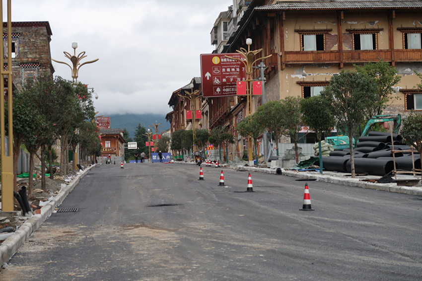 重建中的磨西鎮(zhèn)貢嘎大道市政道路。