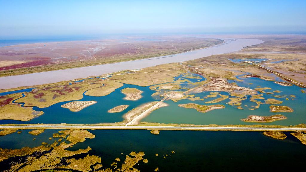 近年來,黃河三角洲國家級自然保護區(qū)建成“引、輸、蓄、排”科學(xué)生態(tài)補水體系,同時著力構(gòu)建“河—陸—灘—?!边B通體系,連通水系115公里,疏通潮溝76公里,恢復(fù)黃河與海洋的水文連通。原先的光板地、鹽堿灘,變成了水草豐茂、生物多樣性富集的大濕地。