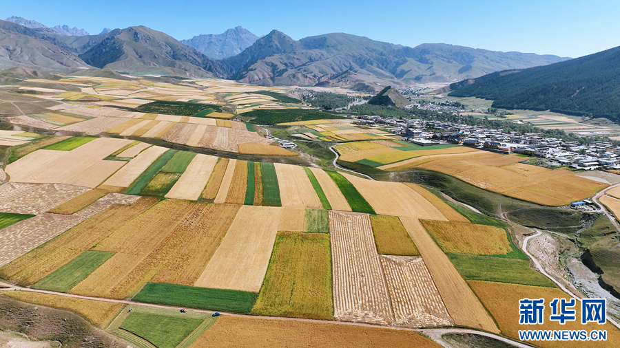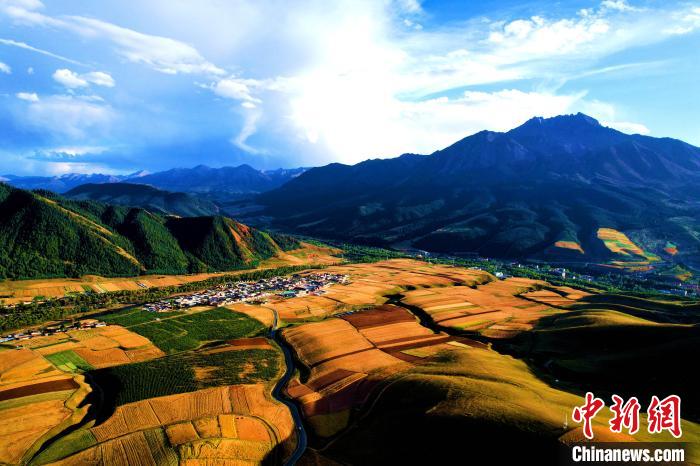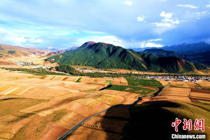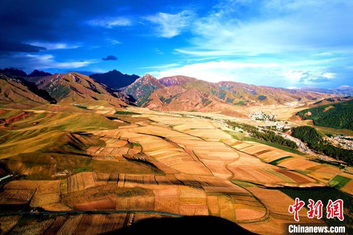 圖為航拍祁連山腹地金色田野。薛蒂 攝