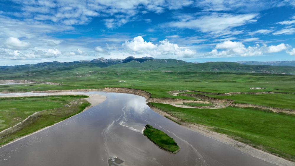 瑪曲縣黃河兩岸綠意盎然(7月6日攝)。新華社記者 陳斌 攝