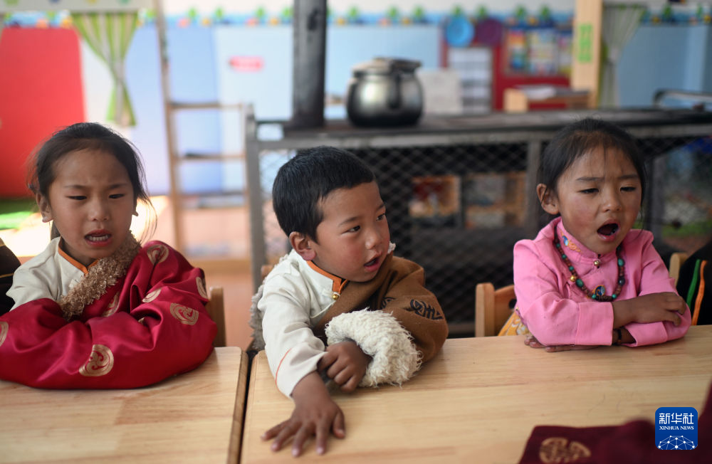在曲麻萊縣葉格鄉(xiāng)幼兒園,小朋友們在課堂上(9月13日攝)。新華社 張宏祥 攝
