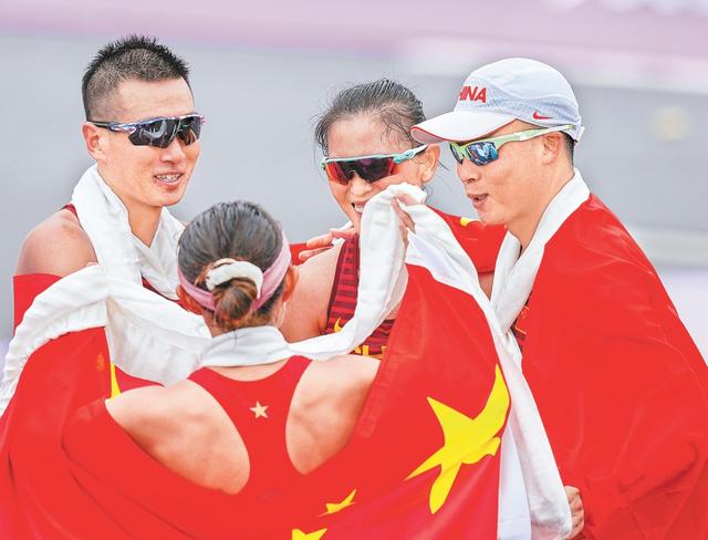 男女混合35公里競(jìng)走是杭州亞運(yùn)會(huì)新增的田徑小項(xiàng),每隊(duì)可以選擇最多兩名男女競(jìng)走選手共同走完35公里的賽程,取成績(jī)最好的一對(duì)成績(jī)相加確定總成績(jī)。該項(xiàng)目只有5支隊(duì)伍14名運(yùn)動(dòng)員報(bào)名,僅有中國(guó)隊(duì)和日本隊(duì)派出了各兩對(duì)選手?!罢f(shuō)實(shí)話,賽前全隊(duì)都認(rèn)為我們拿下金牌問題不大,但我還是有壓力,擔(dān)心拖后腿,團(tuán)體賽不像個(gè)人賽,一個(gè)人的失誤就有可能影響全隊(duì)的成績(jī)?!鼻嘘?yáng)什姐說(shuō)。