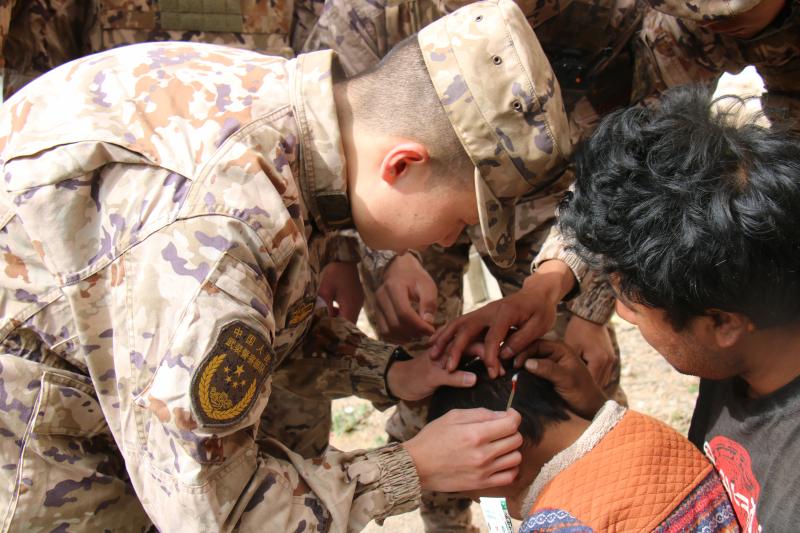 “非常感謝你們,不僅幫助孩子脫險,還這么熱心地給他擦藥?!睎|旺鄉(xiāng)村民格桑緊緊握住官兵們的手,感激不已地說。