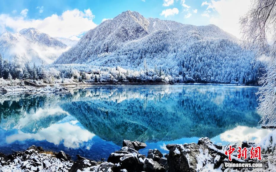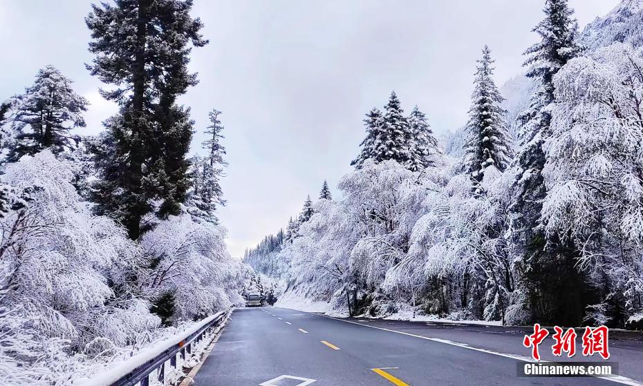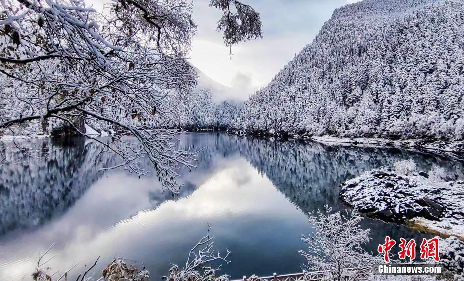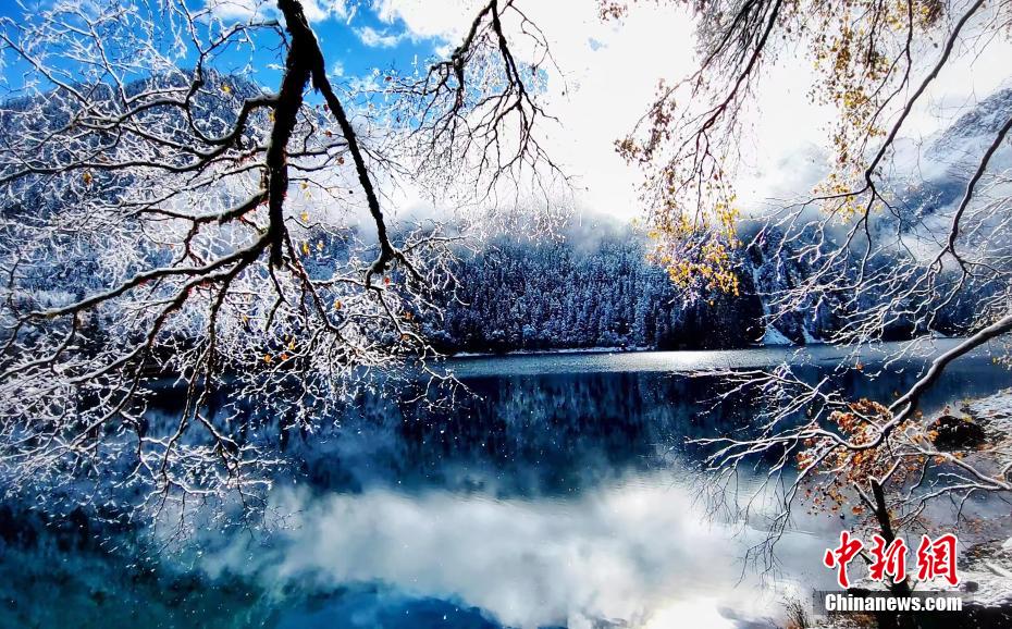 10月18日晚,九寨溝景區(qū)迎來大面積降雪,景區(qū)內(nèi)的長海、五彩池等景點披上銀裝,五彩秋葉與白雪相撞,美得像童話世界一般。