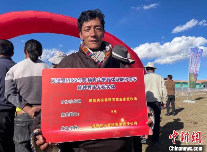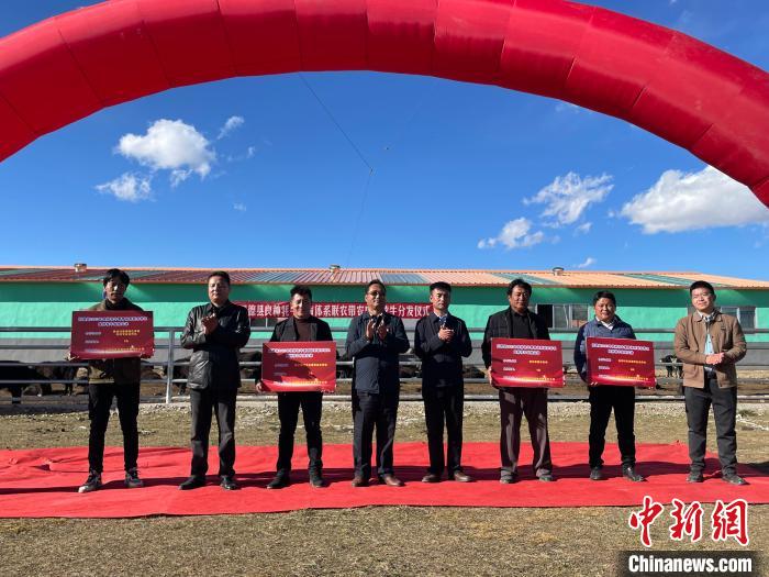 圖為同德縣牦牛產(chǎn)業(yè)園為牧民分發(fā)良種牛犢儀式現(xiàn)場(chǎng)。陳宗淇 攝